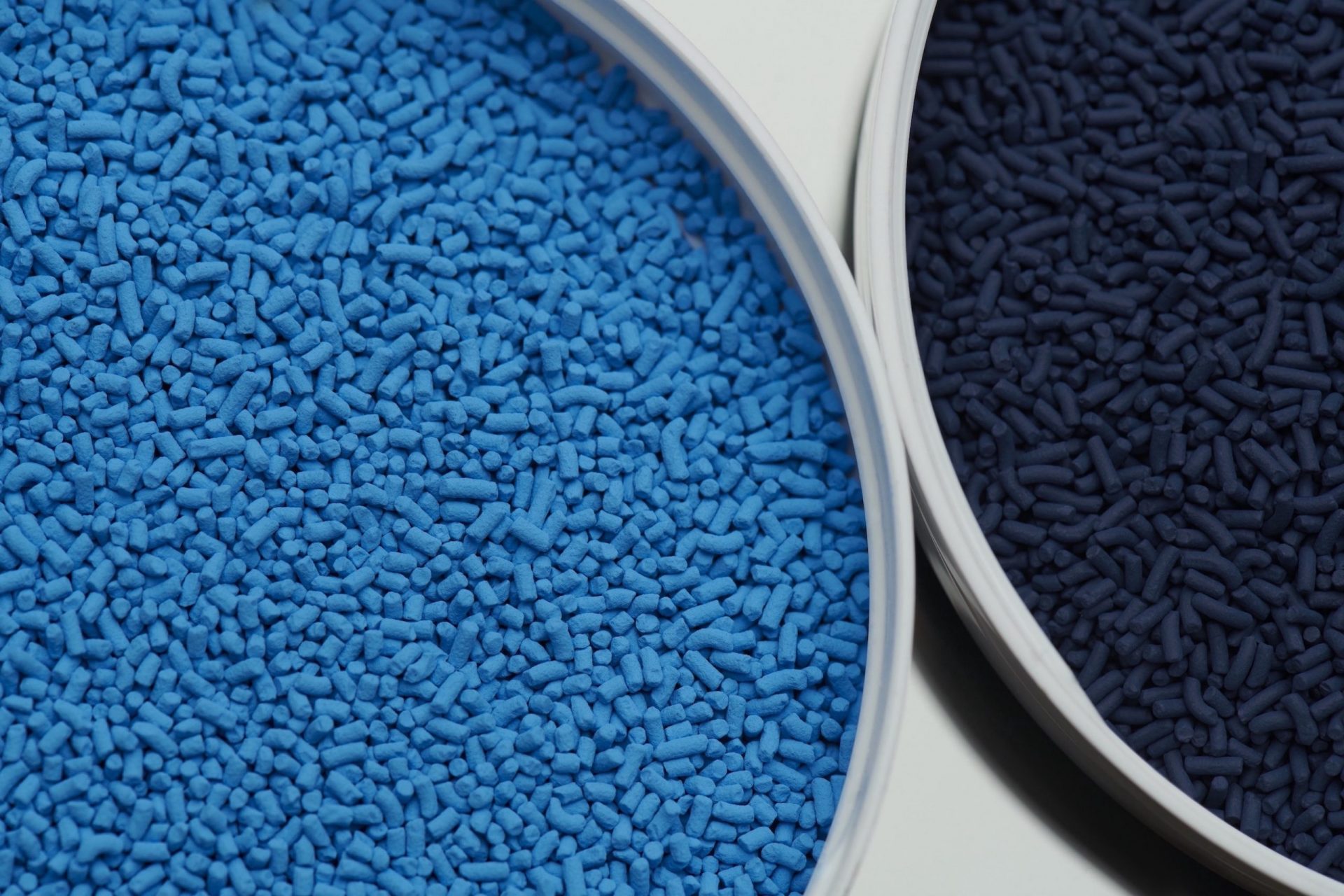 Restores plastic clarity and neutralizes the colour cast that comes when using a high percentage of recycled PET material.
